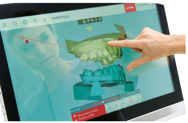 Les déplacements des capteurs, engendrés par les mouvements masticatoires, sont enregistrés par la caméra optique puis appliqués sur le modèle 3D par l’intermédiaire du logiciel MODJAW.