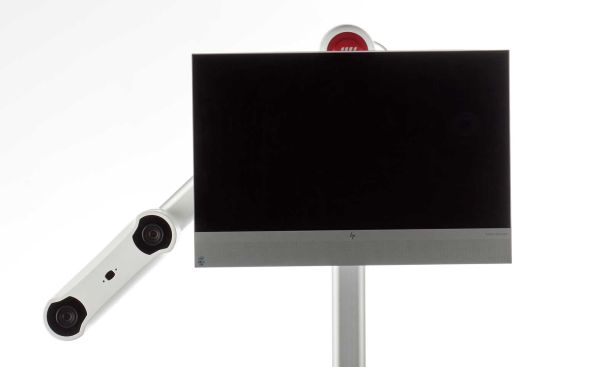 4 roulettes, bras pliable et écran rotatif pour déplacer le dispositif et le ranger en peu de temps